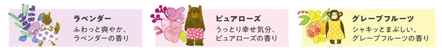 <愛らしいキャラクターが届ける3種の香り>
