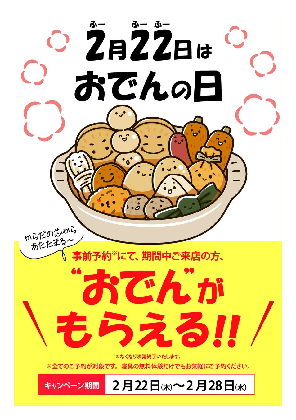 まくらぼでは、「おでんの日」に合わせて、「おでんの日キャンペーン」を実施いたします。