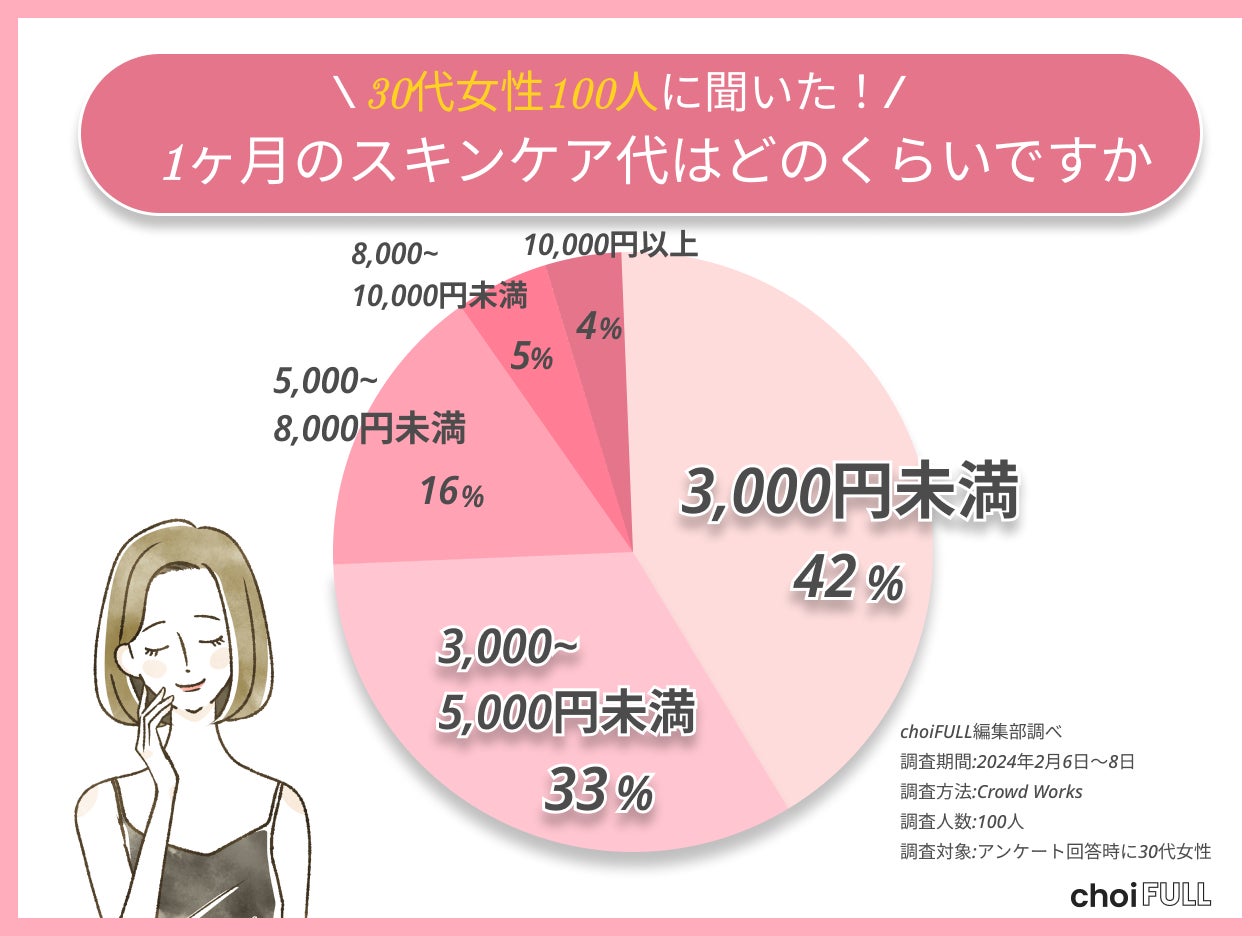 30代女性100人にスキンケア事情を徹底調査!1か月のスキンケア代や使用アイテムなどを伺いました。