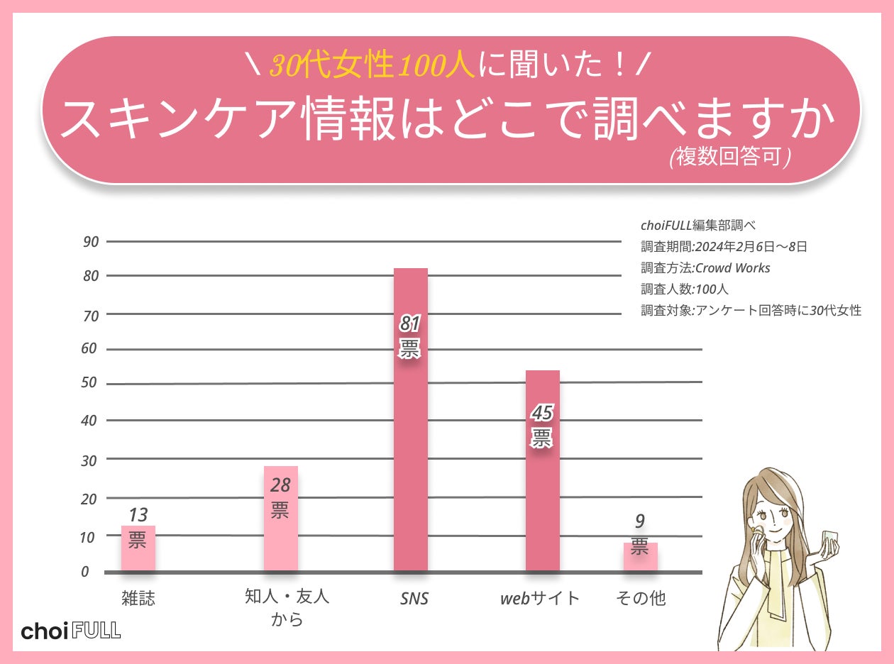 株式会社シアン(本社:東京都渋谷区 代表取締役:籔本崇)が運営する美容と健康メディア「choiFULL」が、30代女性100人にスキンケアに関する調査を行いました。