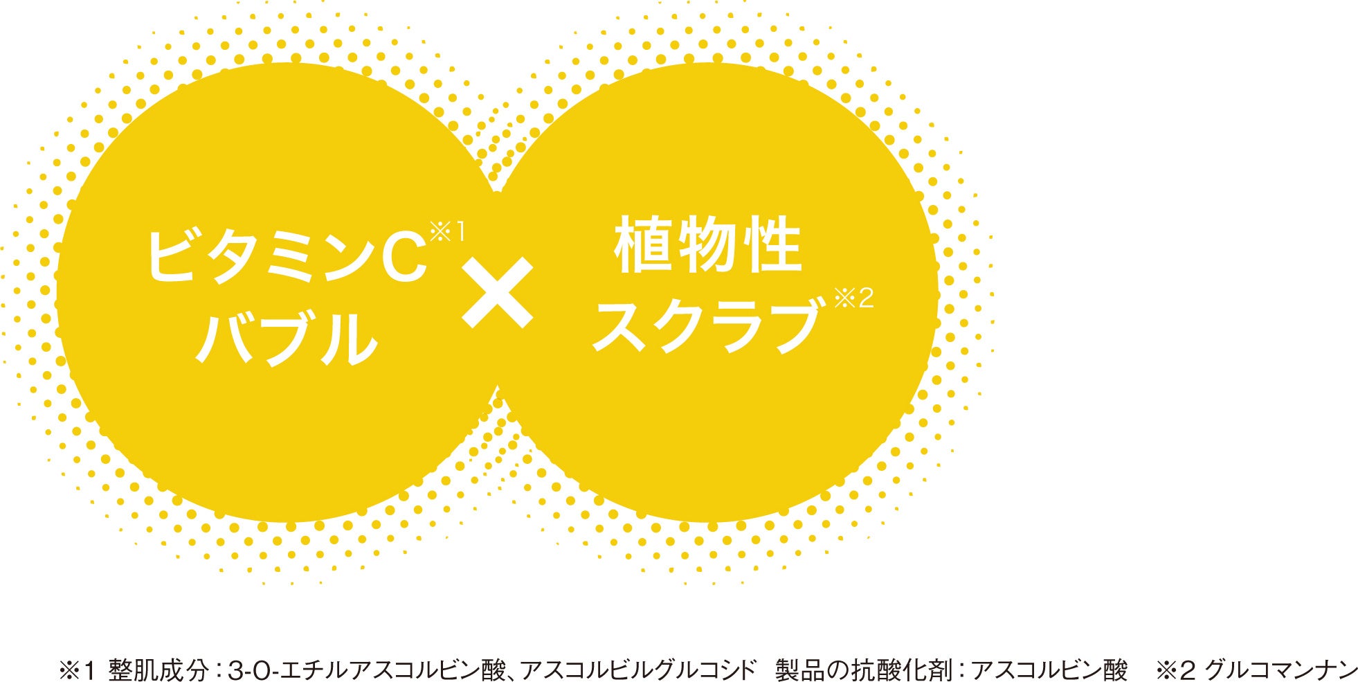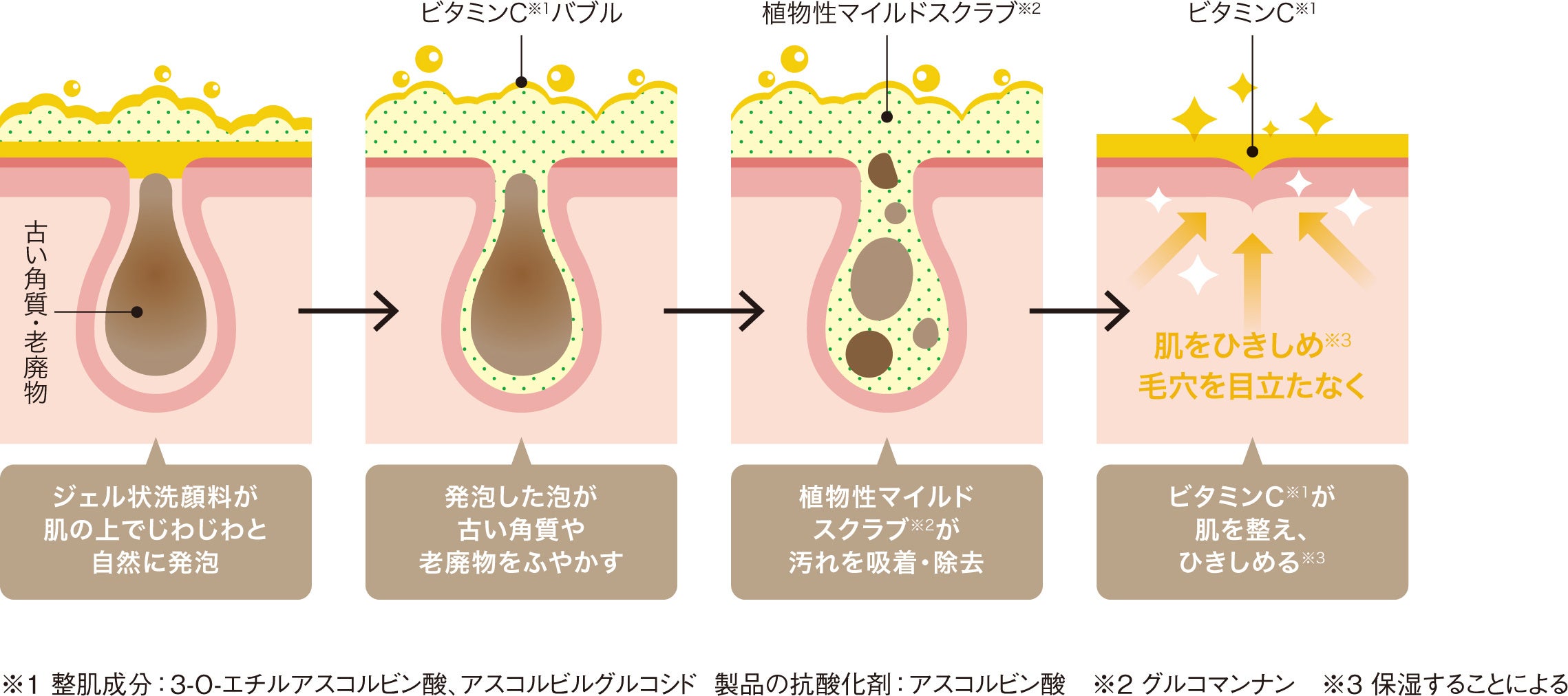 1.ビタミンC*¹バブル+植物性スクラブ*³で毛穴つるん