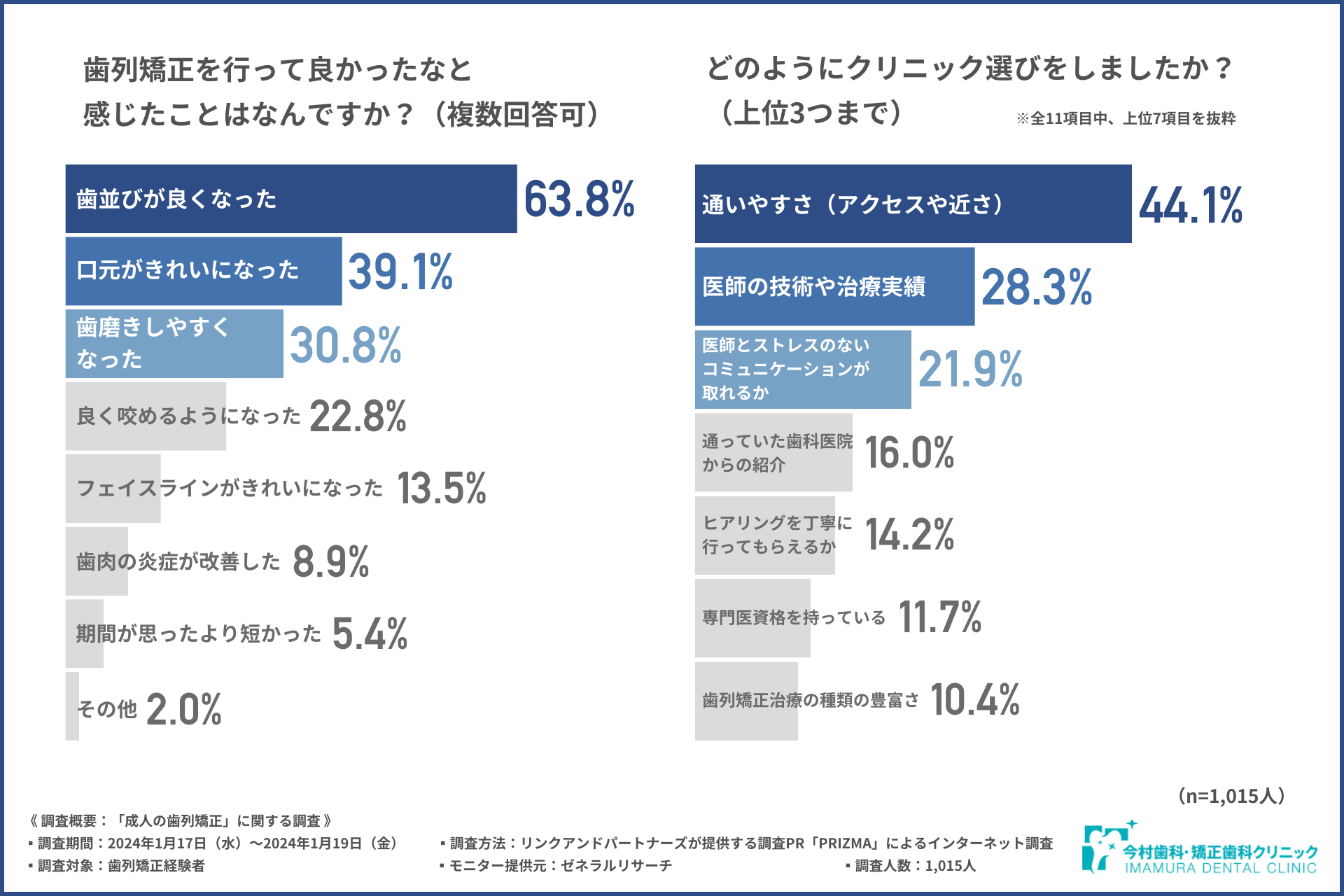 そこで今回、山梨県中央市の歯科医院「今村歯科・矯正歯科クリニック」(https://www.imamuradental.com/)は、歯列矯正経験者を対象に「成人の歯列矯正」に関する調査を実施しました。
