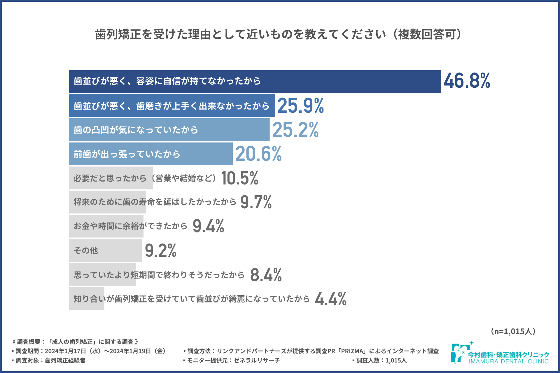 今回の調査で、容姿や歯の健康のために歯列矯正に取り組む方が多い傾向にあることが判明しました。