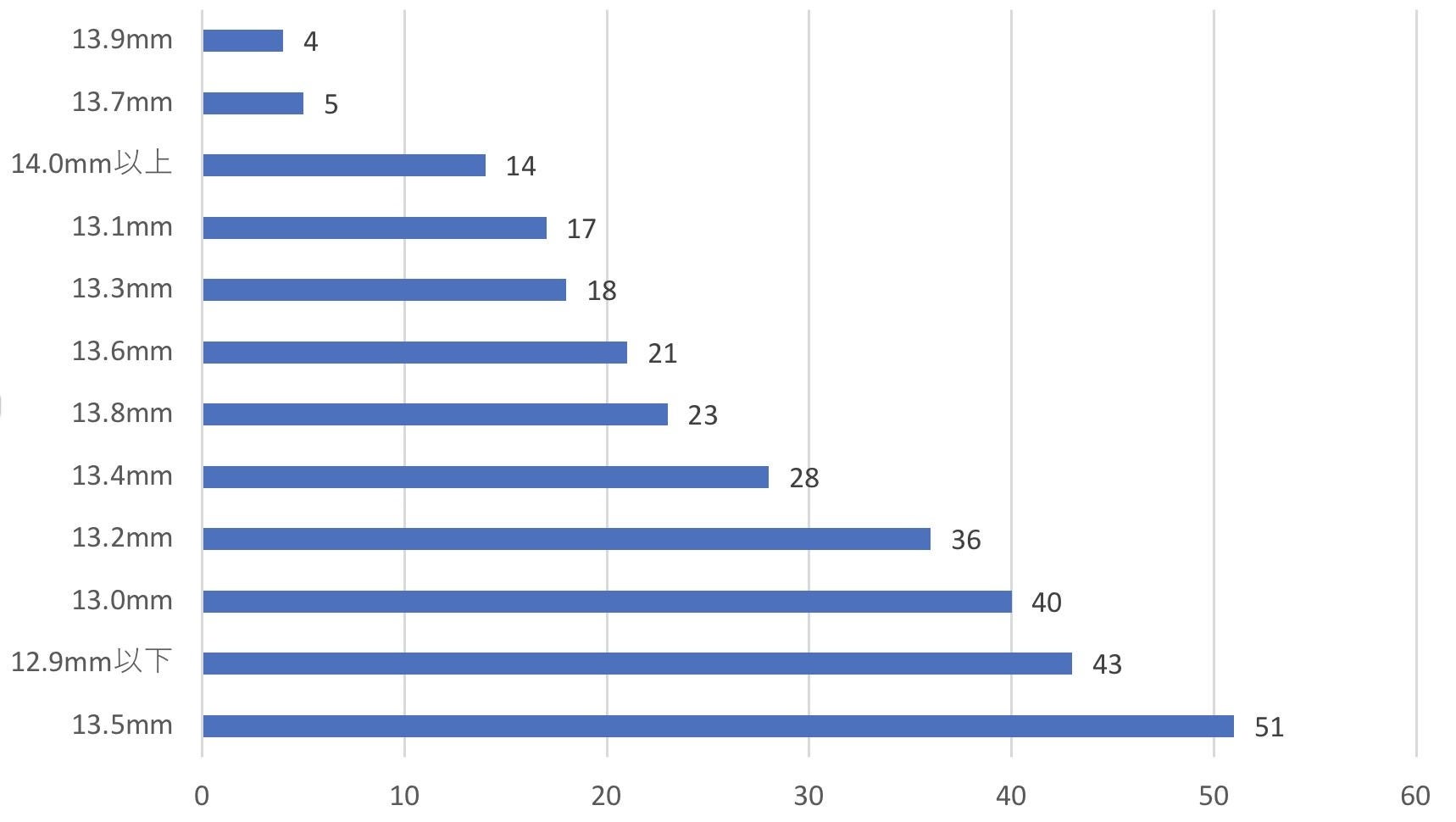 2位と3位の「12.9mm以下」「13.0mm」は、ナチュラルさを求める最近の傾向に概ね合致していると言えるでしょう。