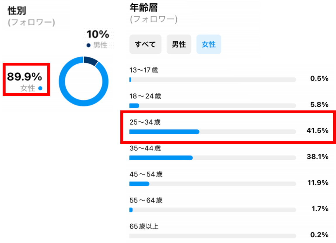 フォロワー数 約15,000の内、女性25~34歳は約4割(約5,600)と構成率が高い。