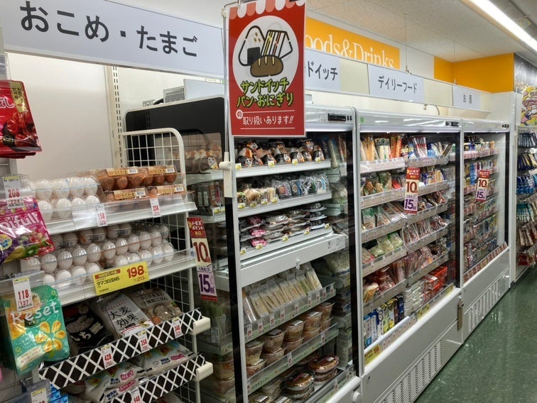 飲料、菓子などに加え、おにぎり・パン・サラダ・サンドイッチなどの軽食、たまご、牛乳、ヨーグルト、お皿不要で温めてすぐ食べられる冷凍食品、アイス等、食品の取扱いを大幅に強化しお客様の毎日をサポートいたします。