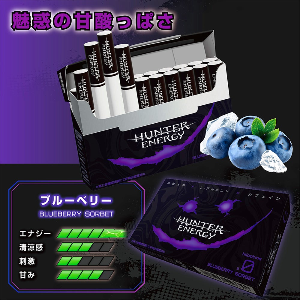 Future Technology株式会社(本社:鹿児島県出水市、代表取締役社長:深井昭匡)※1が開発・製造・販売を行い、昨年末に発売した、10種類のエナジー成分を配合した吸うエナジー系スティック「HUNTER ENERGY」より、待望の新フレーバー「Blueberry Sorbet(ブルーベリーソルベ)」が新発売。公式サイト・Amazon・楽天・Yahoo・LINEにて販売開始いたします。