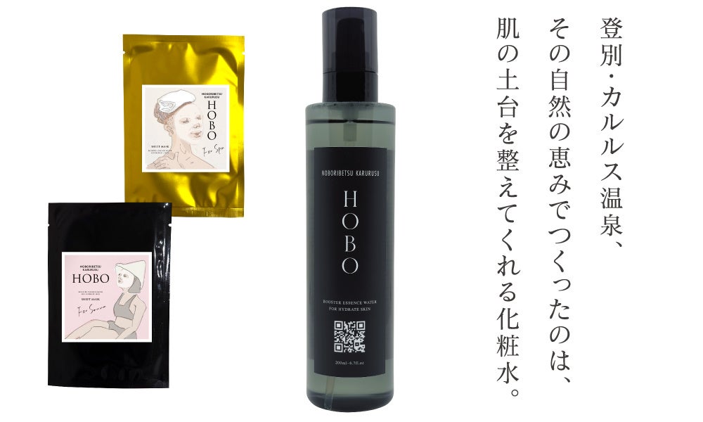 北海道・登別カルルス温泉水でつくった肌の土台を整えるための化粧水「HOBO」より、温泉導入化粧水、シートマスク(サウナ用、入浴用)の卸販売を開始