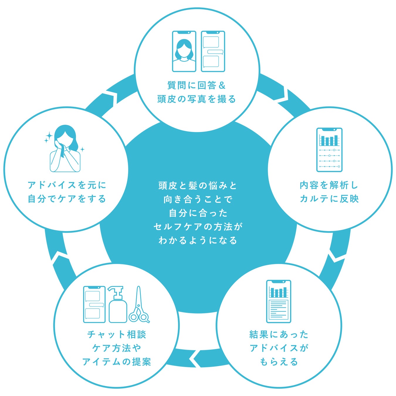 女性特化で頭皮と髪を切り口にしなやかな美しさを手に入れることができるようになるオンラインカウンセリング&画像解析サービス。意外と知らない、相談しにくいヘアケアのお悩みを専門家に無料相談できます。化粧品の提案だけでなく、ライフスタイルの提案を行います。(特許出願準備中)