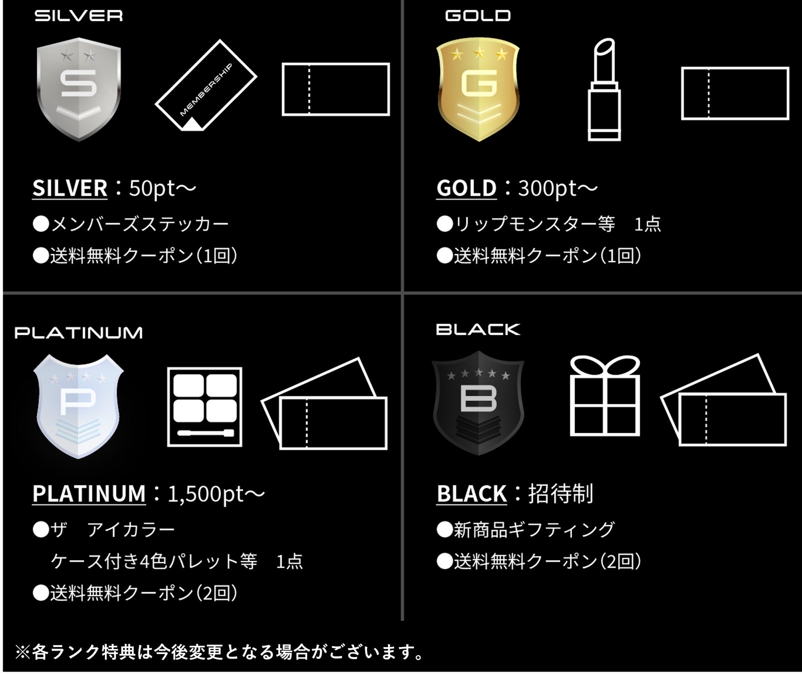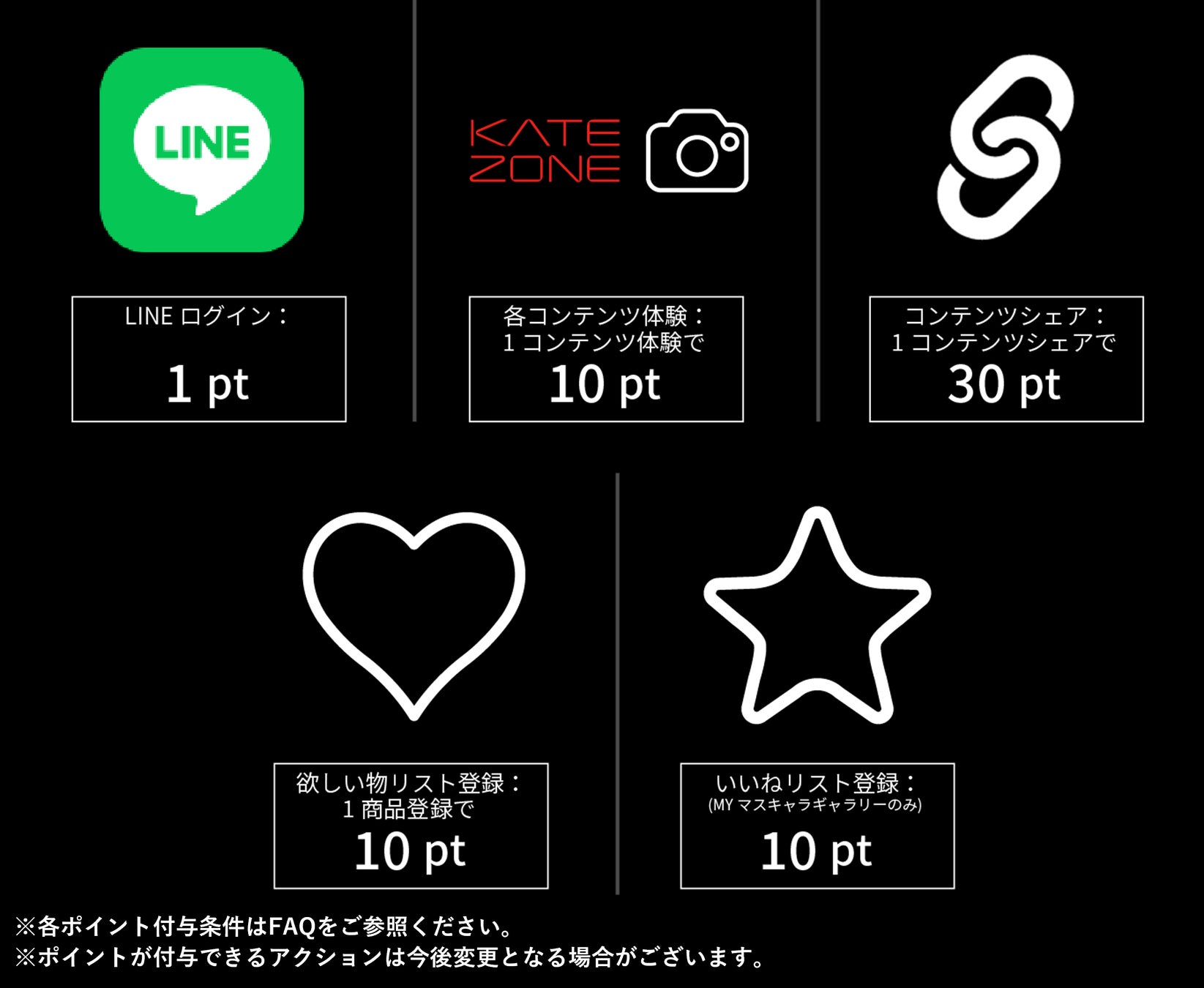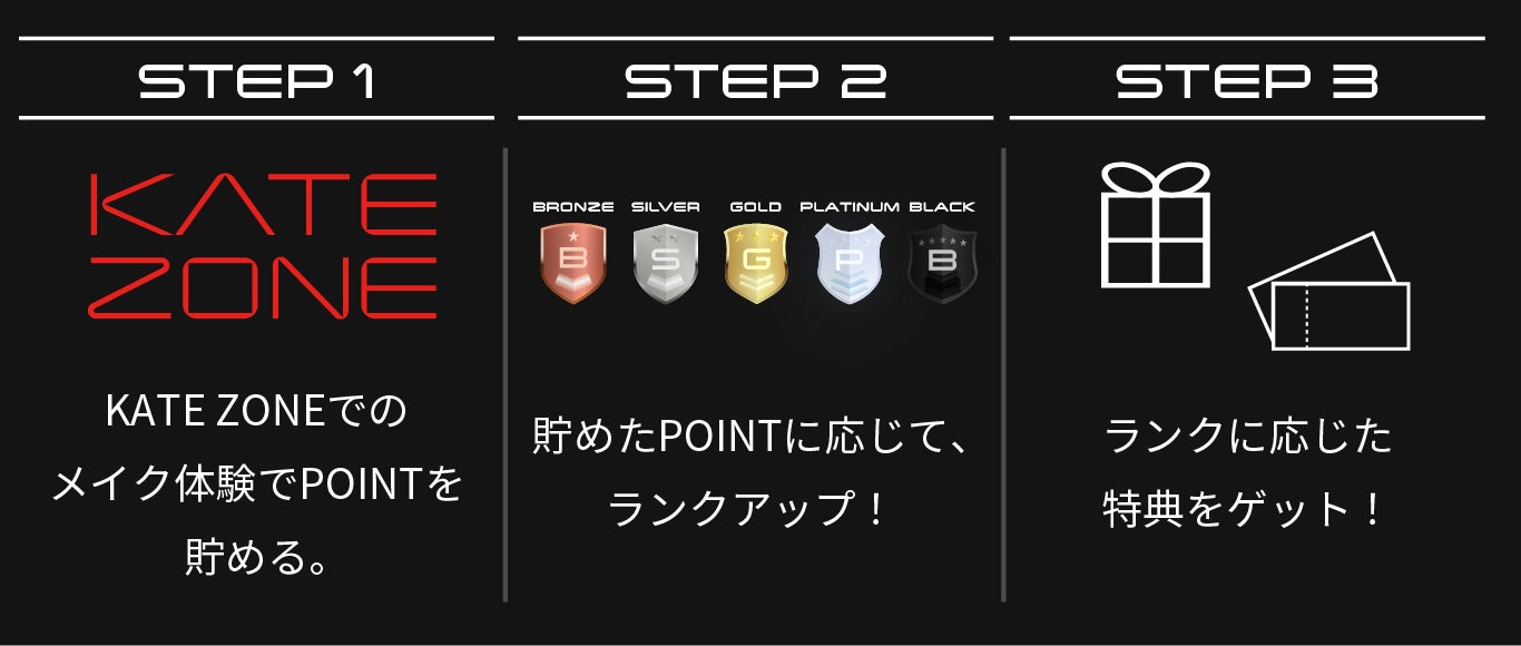KATE ZONEでメイク体験を重ねてポイントを貯めるとランクが上がり、そのランクに応じた特典への応募ができます。