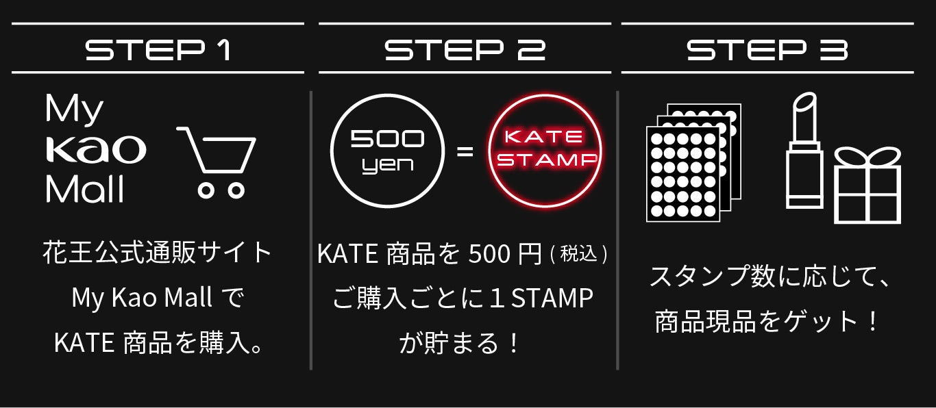 花王公式通販サイトMy Kao MallでのKATE商品の購入金額に応じて獲得できます。