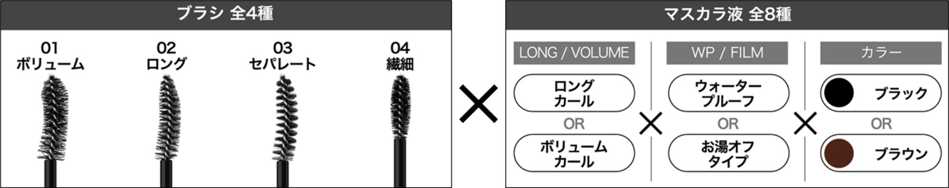マスカラ液やブラシ、色の組み合わせをカスタマイズできる。