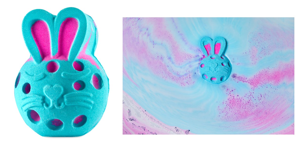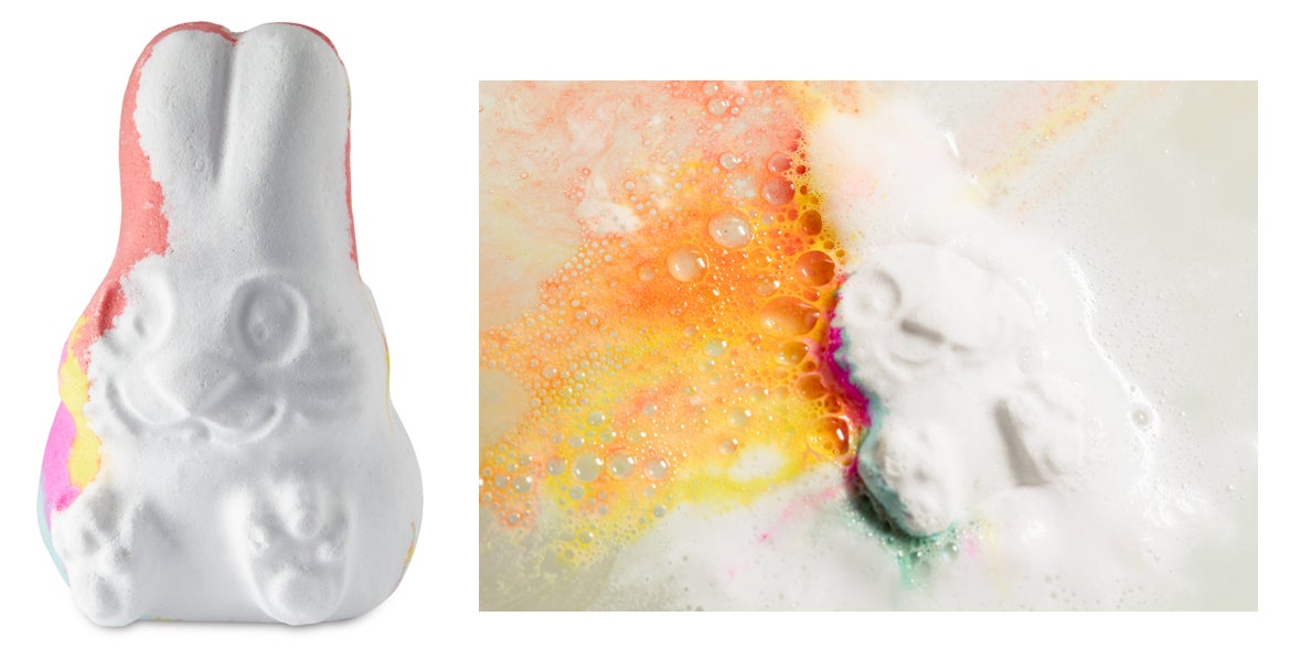 ご機嫌が悪そうな表情をしたウサギモチーフのバブルバー『ホットクロスバニー』や、毎年大人気の虹色のバスアートが特徴のバスボム『フォロー ザ ホワイトラビット』をはじめとする入浴料は全14種展開。また、可愛らしいカメの形をしたジェル状のボディソープ『イースタータートル』、乾燥肌をしっとり柔らかくするミネラル豊富な海藻エキスでできたウサギの形をしたシートマスク『バニー』などのボディケア・スキンケアを全15種。そして、リサイクル素材で作られたギフトやギフトラッピングを全6種ラインナップ。