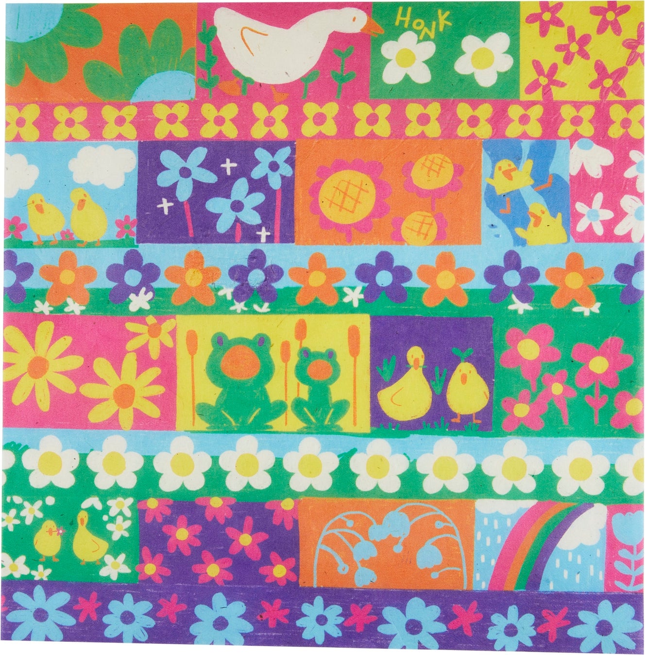 ロクタラップは、ネパールの女性の雇用創出の一環として設立された団体によって製紙されたサステナブルな手すき紙です。3~4年の周期で収穫可能な植物・ロクタから得る繊維で紙をすき、染色液に浸して色のグラデーションがきれいな模様に染めています。一枚一枚手作りしているので、同じものは存在しません。強い繊維のおかげでギフトラッピンにとても適しています。プレゼントの中身を使い終わった後も、アイディア次第で様々な用途にリユースしていただけます。