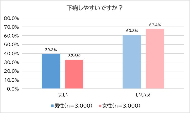 【6,000人に調査】お腹のトラブル 男性の4割、女性の3割が「下痢しやすい」 週1回以上下痢する人の殆んどが突然の便意に悩む