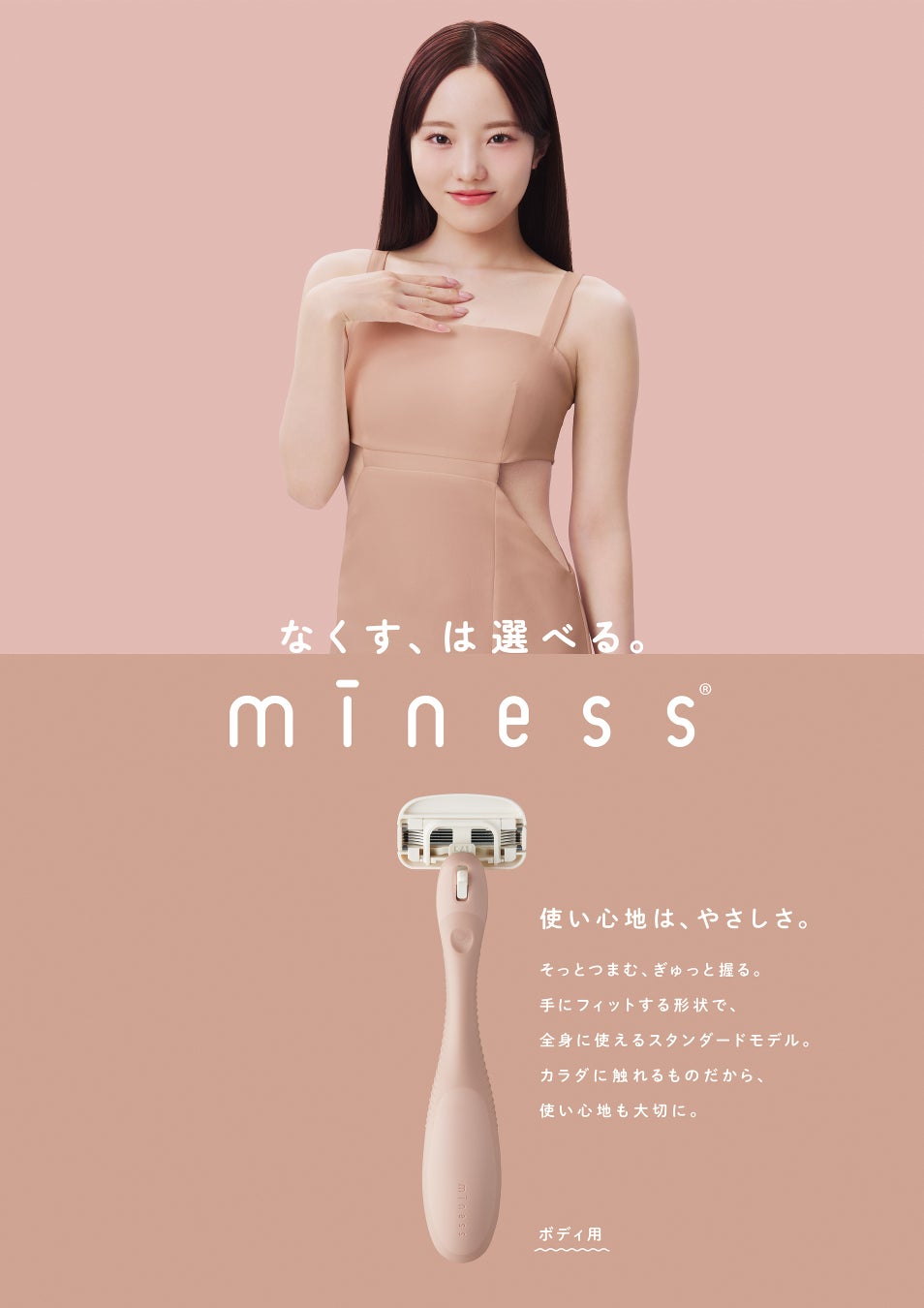 miness®はストレスのない使用感を追求したパーソナルケアブランドです。セルフケアの「わからない」「上手くできない」がなくなるように、わかりやすさ使いやすさ、肌へのやさしさにこだわったアイテムをラインナップ。2024年3月6日には第一弾としてボディ用、背中用、うで・あし用、わき用、VIOデリケートゾーン用の5つのカミソリを発売いたします。