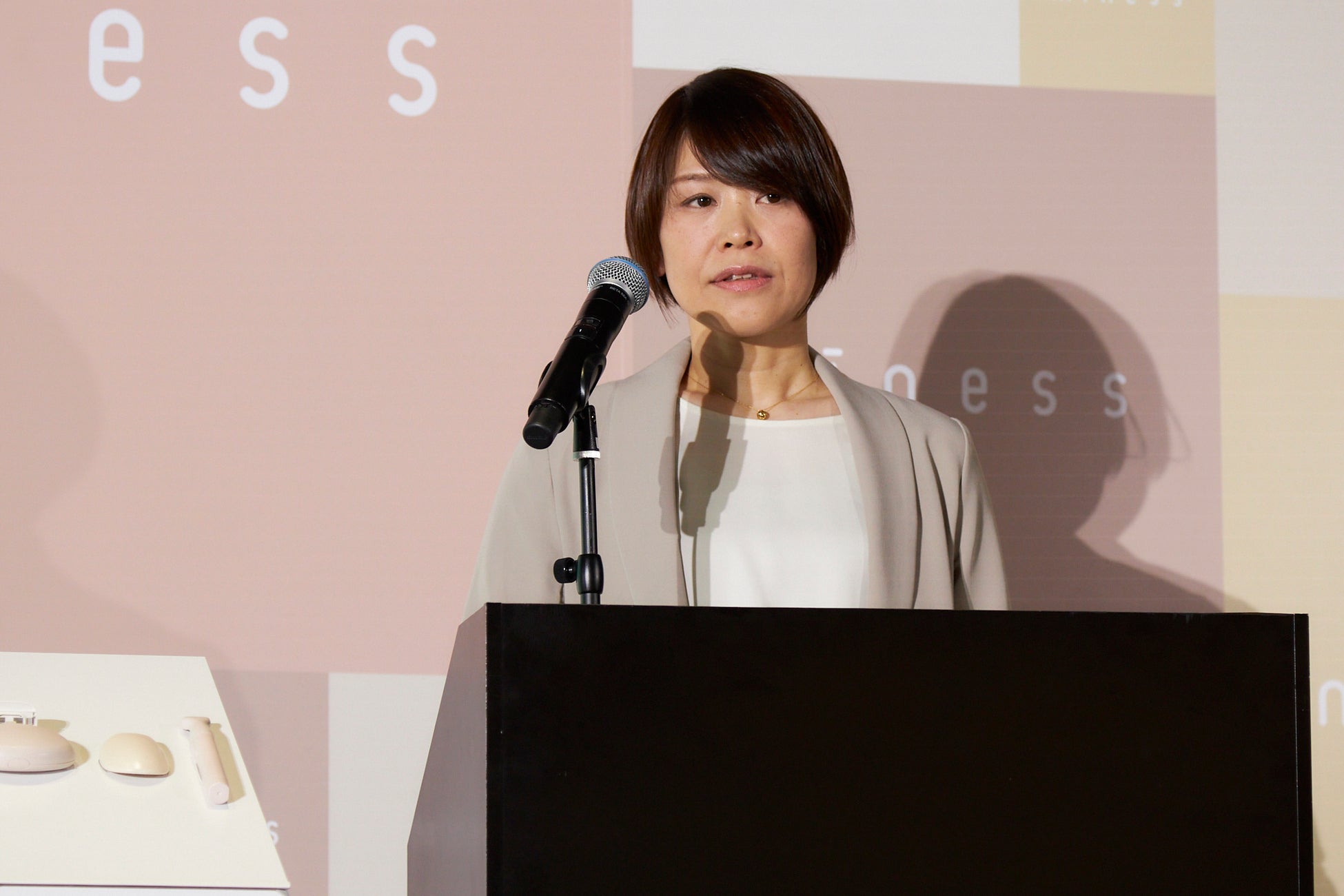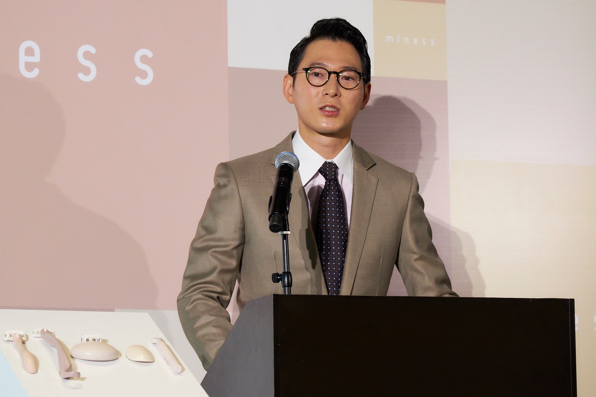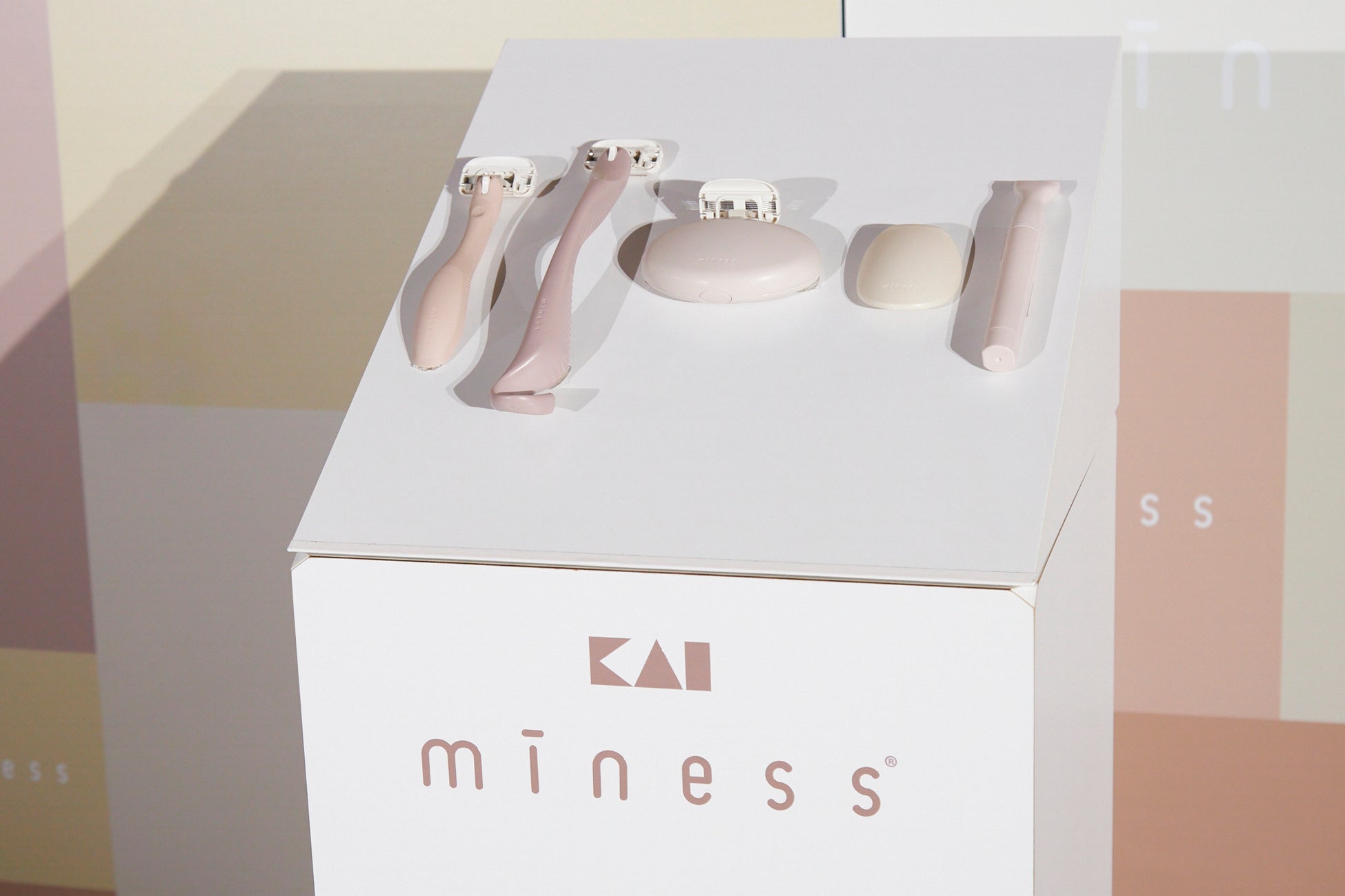 続いて、今回の新ブランドについて発表いたしました。「貝印のカミソリへのこだわりと技術がつまったブランドminess®がいよいよ3月6日に発売となります。miness®は、毛を剃るという行為に向き合い続けてきた貝印が、現代のニーズに合わせて、新たに『部位別の剃毛』を提案するブランドです。ブランド名の『miness®』は引き算を意味するマイナスと、女性名詞の接尾語である-ESSを組み合わせています。ネガティブに捉えられがちな剃毛を前向きに受け止めていただきたいという思いから、『マイナスをマイナスでプラスに』というメッセージを掲げています。miness®はそれぞれの悩みに合わせた部位別のアイテムと、正しい情報提供によってユーザーの皆様によりそうブランドです。剃毛を“引き算のスキンケア”として捉えなおし、求める仕上がりや使いごこちを実現するアイテムをラインナップしております。」