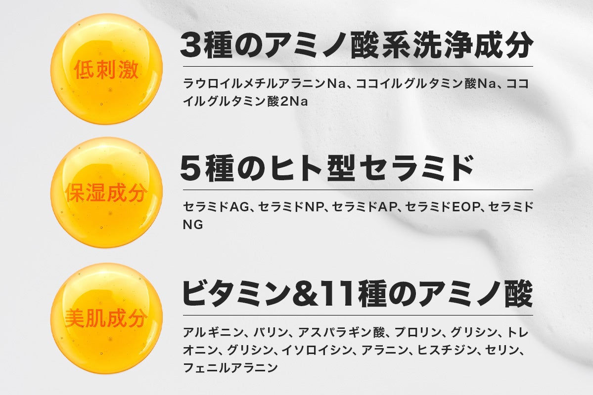 1. 低刺激を実現する3種のアミノ酸系洗浄成分