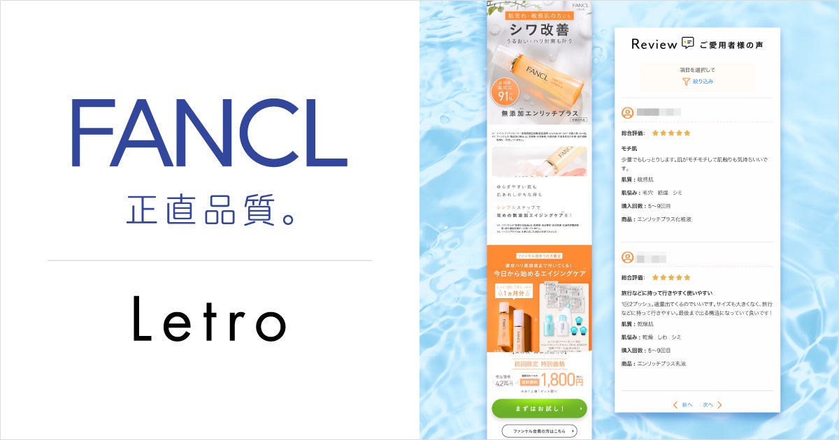 企業のマーケティングDXを支援するアライドアーキテクツ株式会社(東京都渋谷区、代表取締役社長 CEO:中村壮秀、証券コード:6081)でSaaS事業を展開するプロダクトカンパニー(プレジデント:村岡弥真人)は、株式会社ファンケル(本社 :神奈川県横浜市、代表取締役 社長執行役員 CEO 島田和幸、以下ファンケル)に対し、CVR最適化プラットフォーム「Letro(レトロ)」を通じて、新規顧客獲得用LPにおけるレビュー最適化運用の支援を行いました。