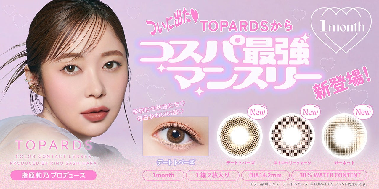 PIA株式会社(本社:東京都品川区 代表取締役:見原 博道)は、カラコン支持率No.1(※)指原莉乃さんプロデュースのカラーコンタクトレンズブランド『TOPARDS(トパーズ)』より、マンスリーカラコン『TOPARDS 1MONTH(トパーズ ワンマンス)』を2024年3月1日(金)よりQoo10にて先行発売いたします。