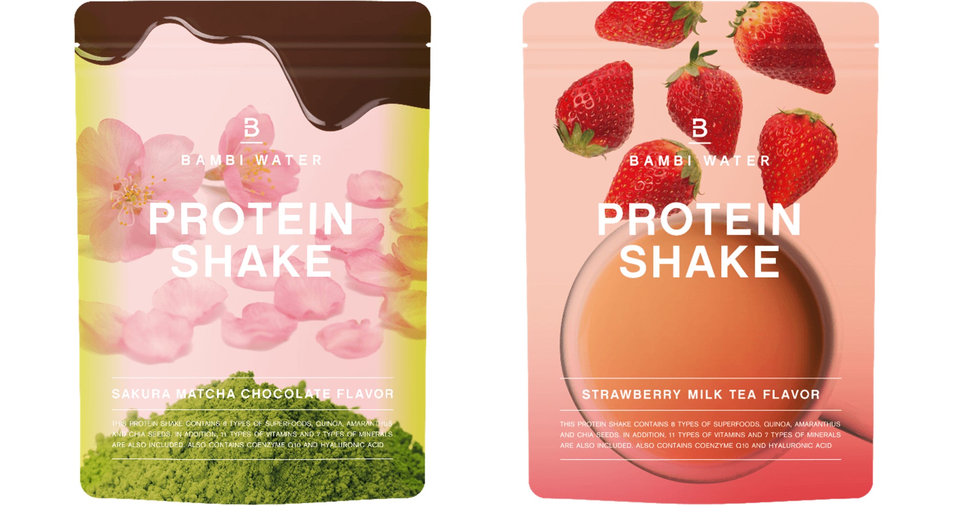 BAMBI WATER プロテインシェイクに春限定フレーバー「さくら抹茶チョコレート」と「ストロベリーミルクティー」が登場!