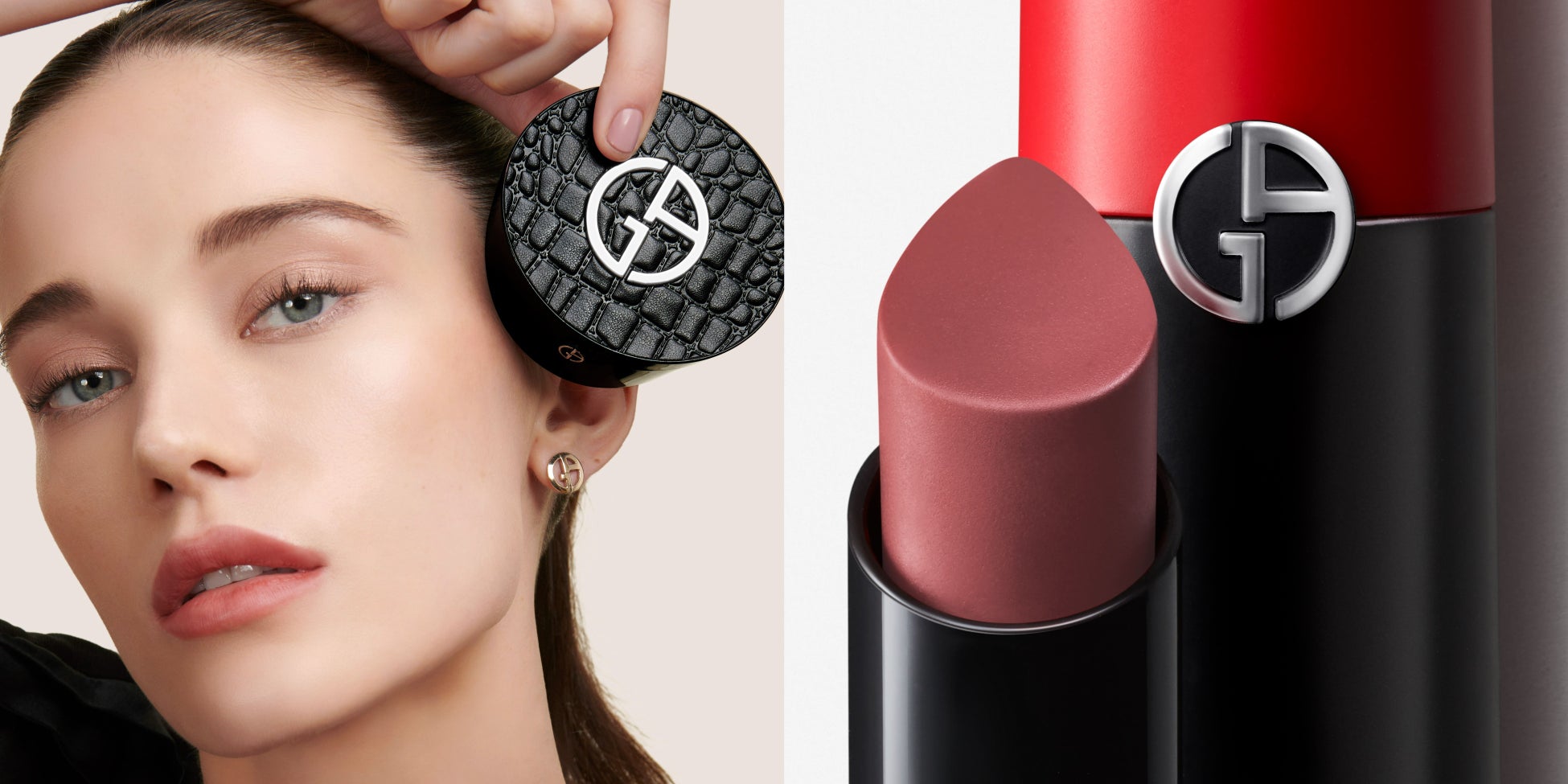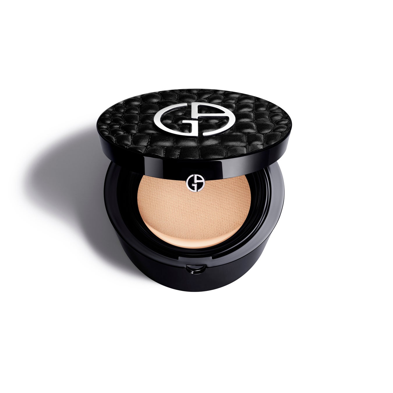 “エフェクロコ”のケースは、ジョルジオ アルマーニのラ プリマ ハンドバッグのクロコデザインにインスピレーションを受けたデザインで、クロコパターンのレザー調ファブリックと、グロッシーなブラックの本体に、メタリックシルバーのブランドロゴがあしらわれています。クチュール感あふれるデザインのコンパクトと、洗練されたルミナス マットな仕上がりが、贅沢なクッションファンデ体験へと誘います。