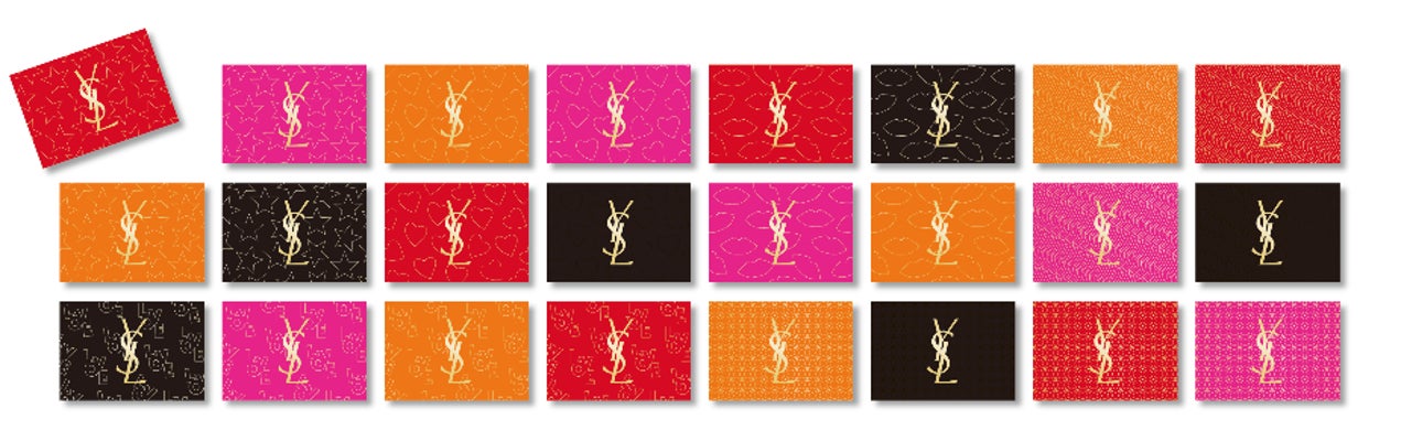 ムッシュ イヴ・サンローランが毎年親しい友人や家族、顧客にカードを送っていたストーリーからインスピレーションを受けたフラッグシップ ブティックオリジナルカード。イヴ・サンローランのシグネチャーカラーをベースに、アイコンモチーフと店舗限定のジャパニーズモチーフの