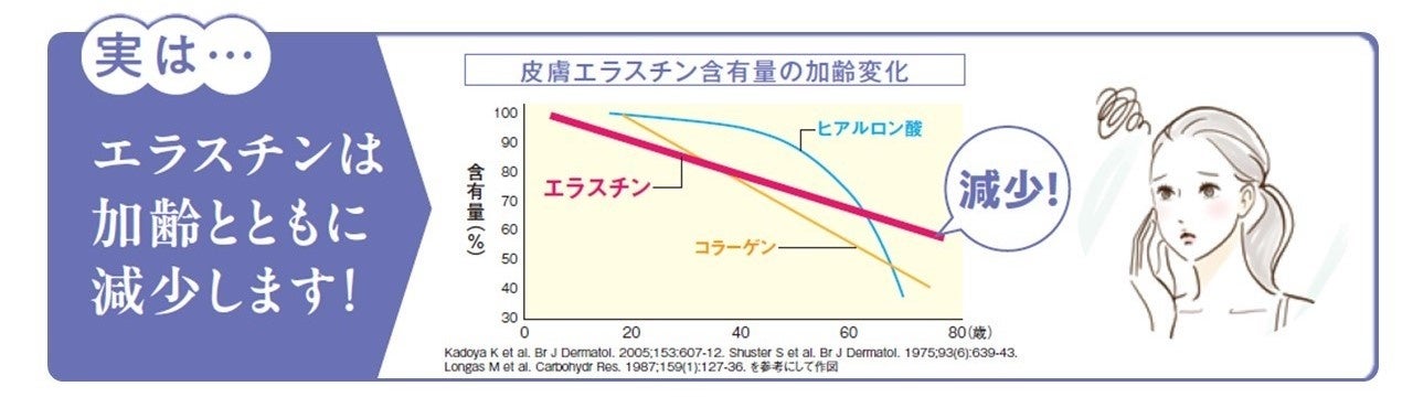 いつものスキンケアを変える事なく、年齢美容に欠かせない大切な成分「エラスチン」をサプリメントで手軽に補えます。