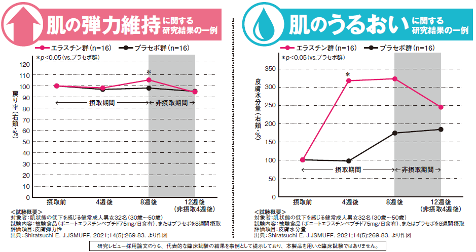 <機能性関与成分 ボニートエラスチンペプチド 研究結果の一例>