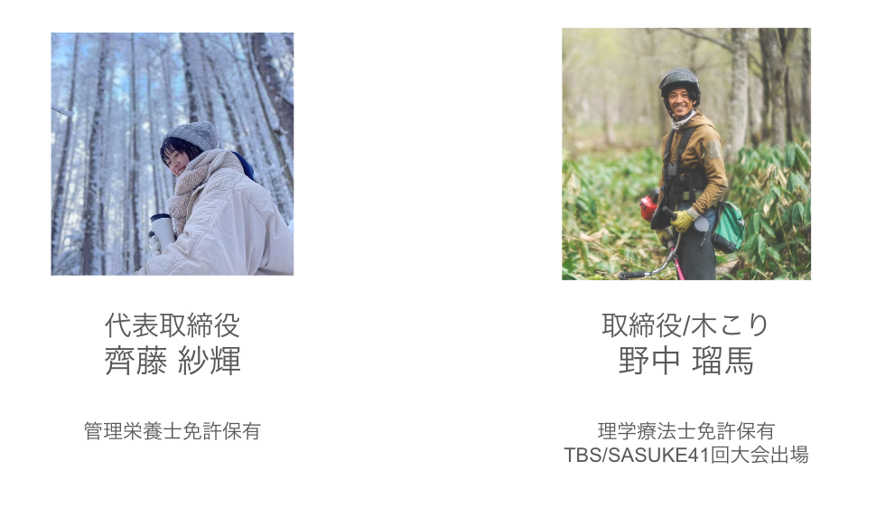 ◎メンバー:齊藤紗輝(代表取締役)野中瑠馬(取締役・木こり)