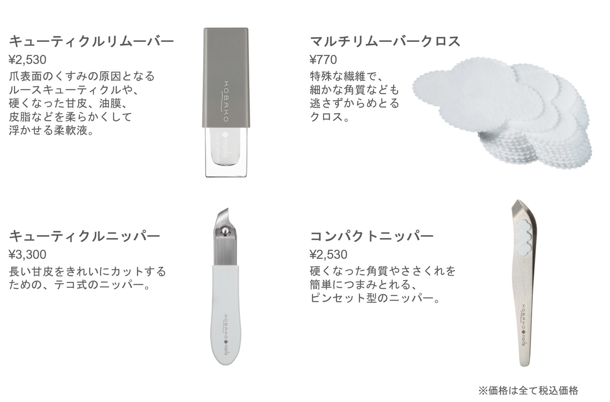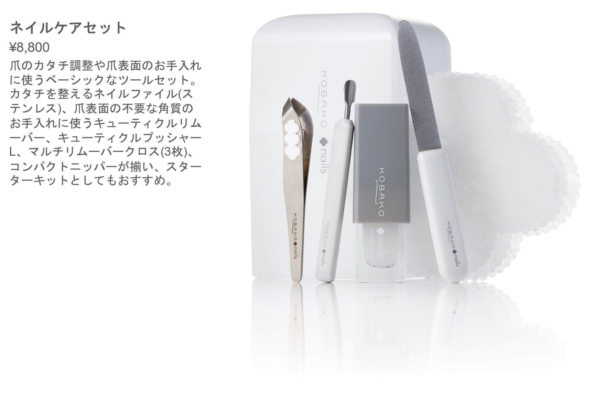 <KOBAKO nails>はトータルビューティーサロン「uka」代表のトップネイリスト渡邊季穂氏をプロダクトアドバイザーに迎えて開発したネイルケアラインです。