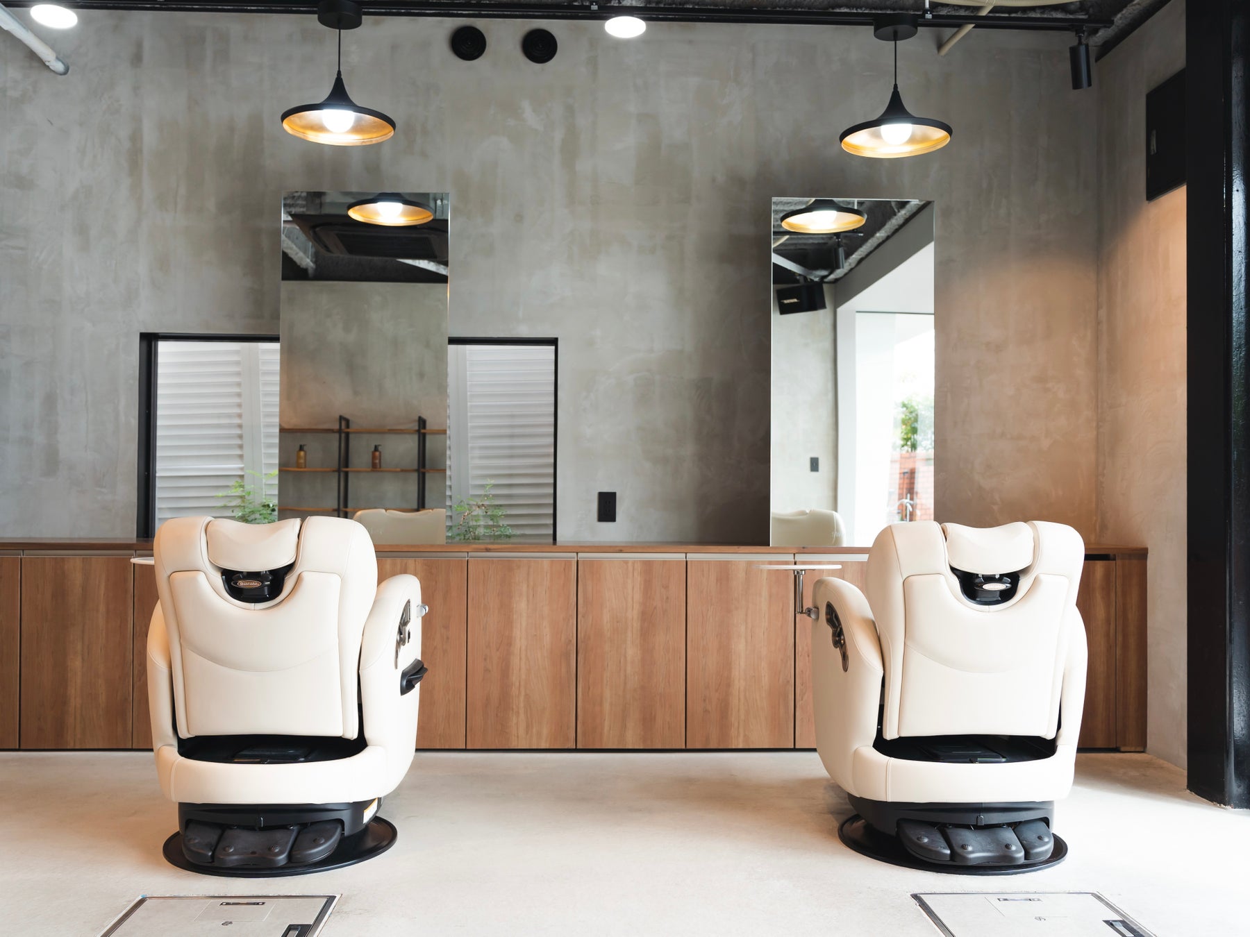 一般的な美容室は、セットブースとシャンプーブースが別れてるため、スペースが限られる。そのため、ゲスト同士の間隔がどうしても近くなってしまいがち。