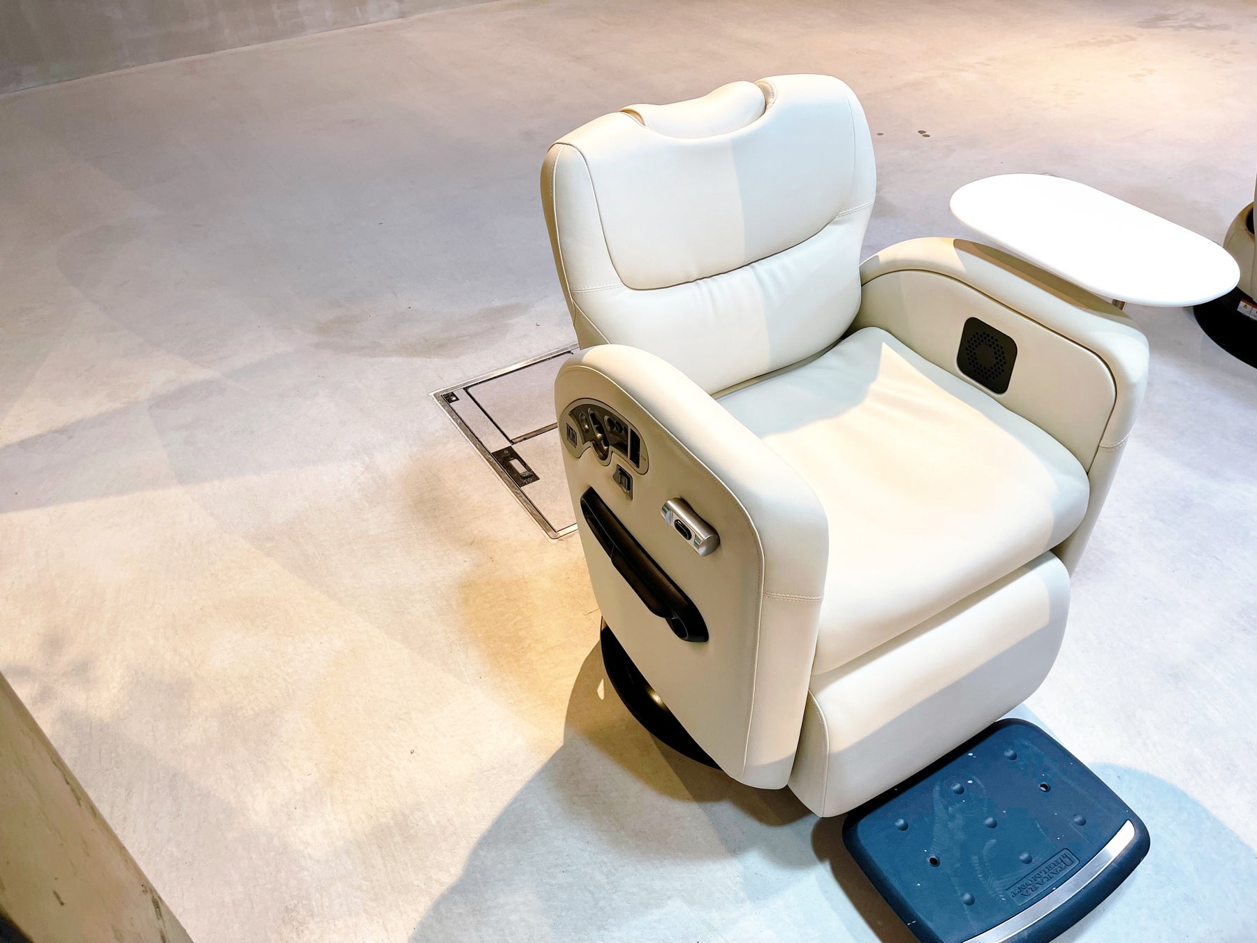 ソファーの内側に送風ファンが搭載されているので、暑い夏場でも快適に過ごせる。レッグレストにはヒーターを内蔵してるので、寒い冬場は足元を温め、女性ゲストに嬉しい仕様になっている。
