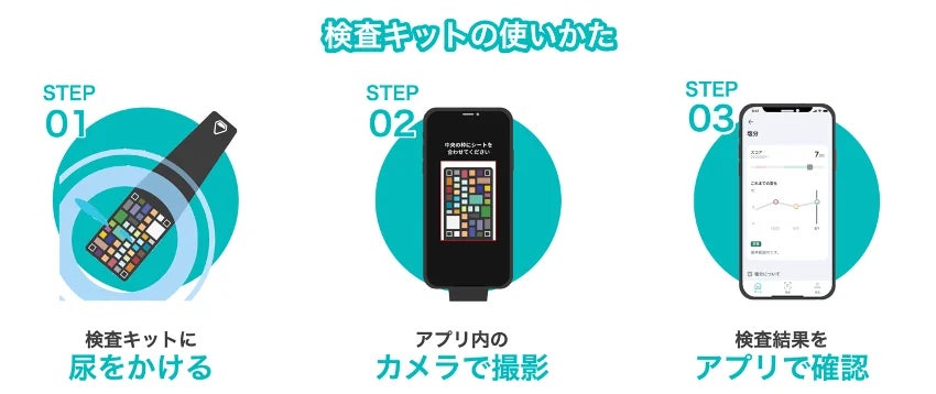 即時尿検査を活用し、栄養状態の改善や健康課題の解決などを促すサービスの構築を目指す。