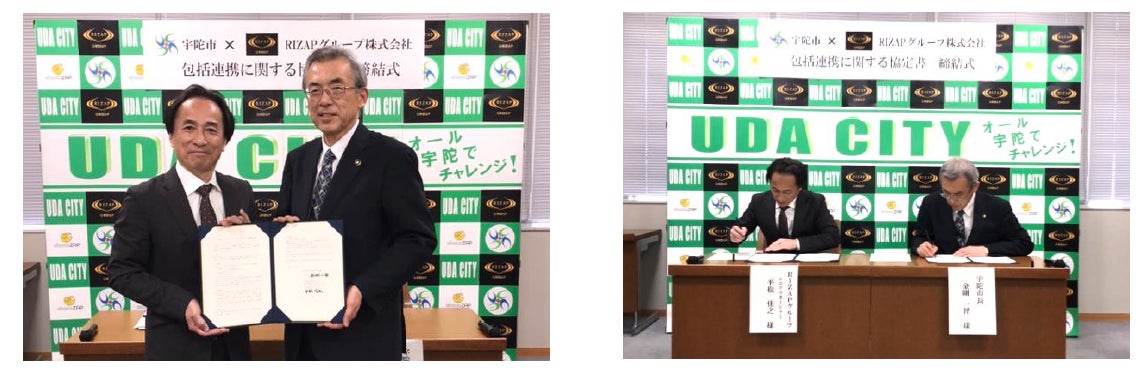 RIZAPグループ株式会社(代表取締役社長 瀬戸 健、本社:東京都新宿区)は、奈良県宇陀市(市長 金剛一智)との包括連携協定を2024年2月28日に締結いたしましたのでお知らせいたします。なお、本提携は当社グループが今年度に実施した地方自治体との9件目の提携事例となります。(今年度の地方自治体との提携事例:秋田県鹿角市、埼玉県久喜市、兵庫県養父市、岐阜県各務原市、千葉県一宮町、奈良県田原本町、三重県桑名市、静岡県裾野市) 当社グループは、今後も引き続き地方自治体との提携の取り組みを推進し、住民の皆様の健康寿命延伸を中心とした地方創生への貢献を継続してまいります。