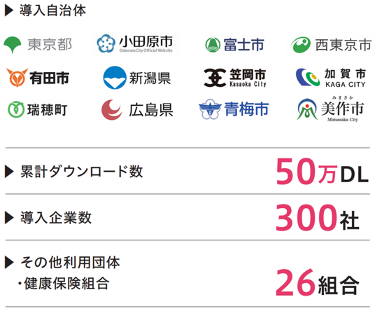 健康増進施策を進める自治体や企業、健康保険組合でも導入実績があります。
