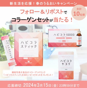 抽選で10名様に豪華!ハピコラシリーズのコラーゲンセットが当たる!期間:2024年3月1日(金)〜2024年3月15日(金)
