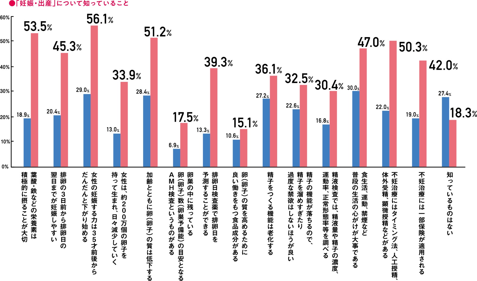 妊活に関する知識の有無に男女間で倍近い差が。妊娠・出産に関する情報は女性がインターネットで調べ、パートナーに共有する流れが主流。