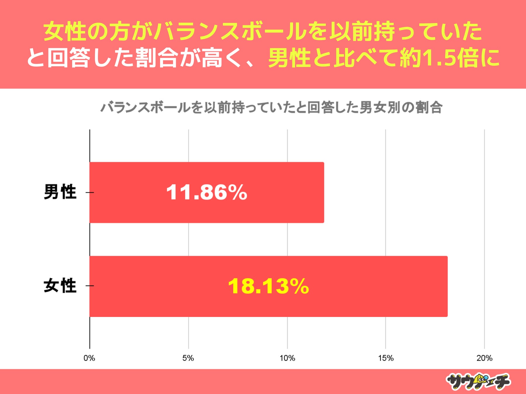 【女性の方がバランスボールを以前持っていたと回答した割合が高く、男性と比べて約1.5倍に】
