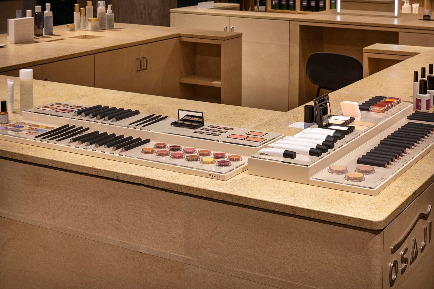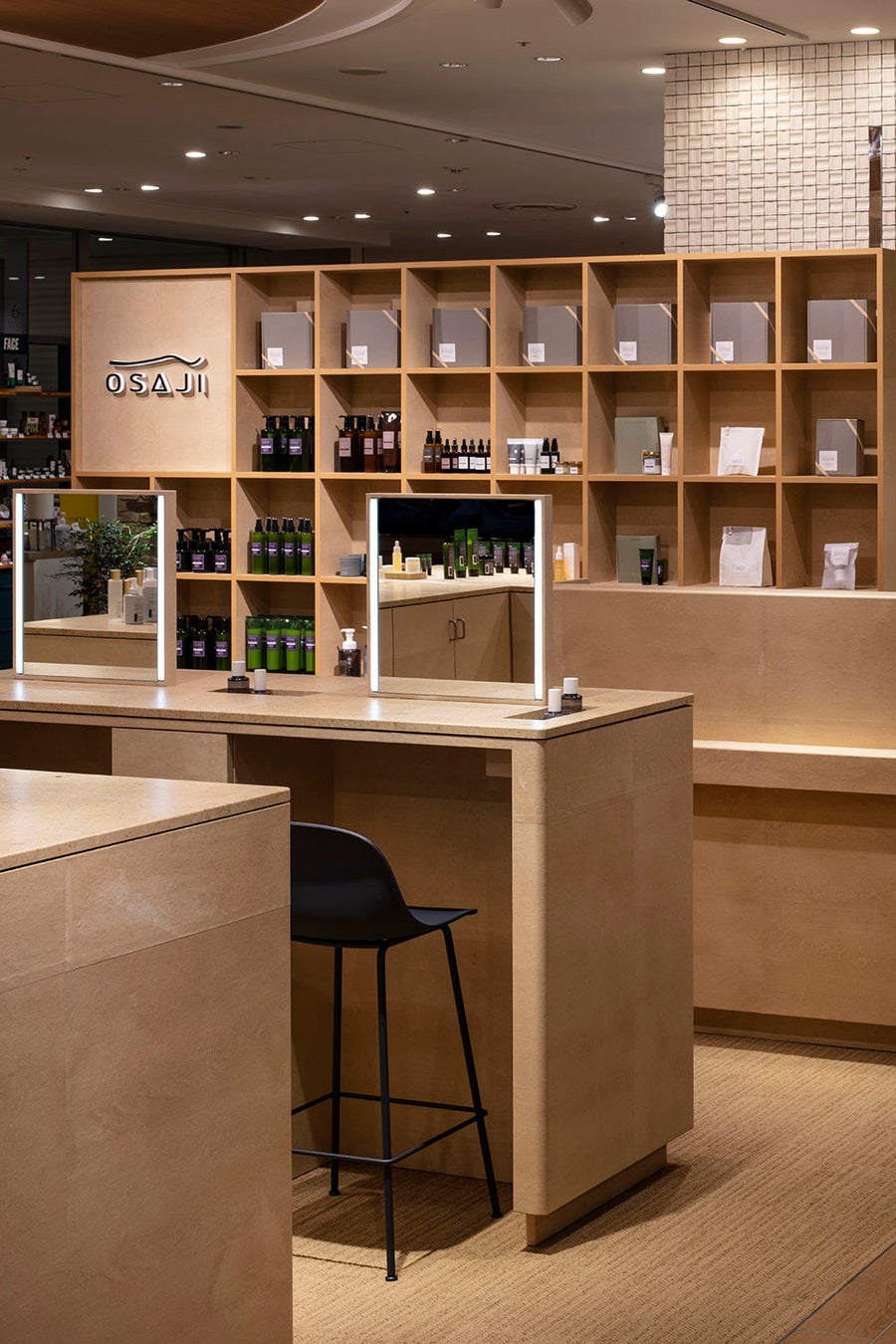 「OSAJIタカシマヤ ゲートタワーモール店」は、店舗を訪れた方々が純粋に肌のことを考え、相談し、試せる空間を設計しました。
