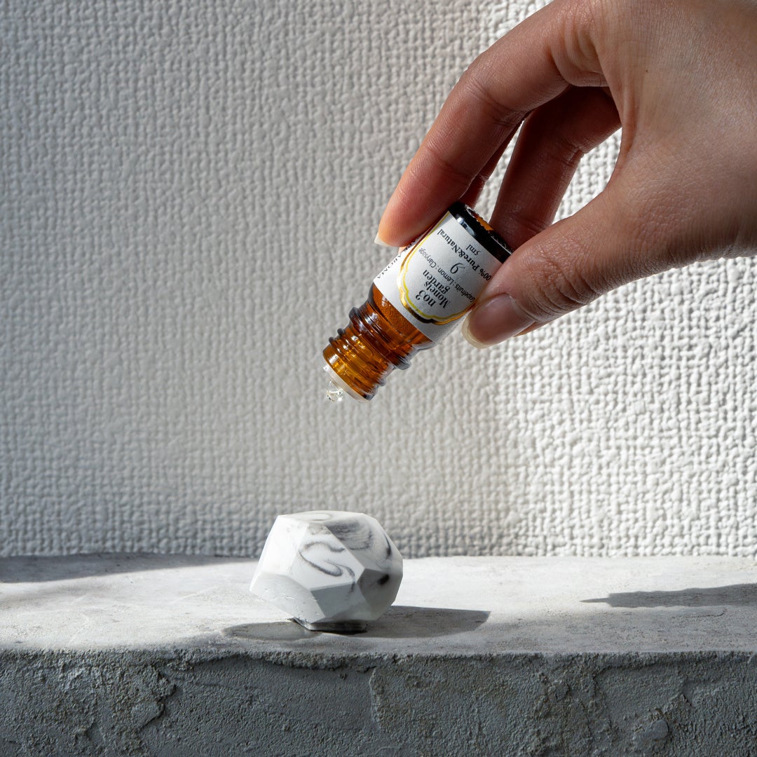 人気の精油と鉱石の形の神秘的なアロマストーンのセット。9.kyuuオリジナルブレンド精油は貴方だけの景色が広がります。