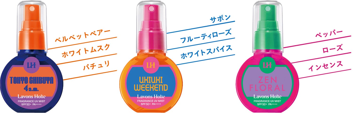 株式会社ネイチャーラボ(本社:東京都渋谷区)は、音楽のように気分で選ぶ、香るコスメブランド『ラボンホリック(Lavons Holic)』から、人気の3種の香り「トーキョーシブヤ4a.m.」「ウキウキウィークエンド」「ZENフローラル」の”香ルUVミスト”を2024年4月1日(月)より発売いたします。