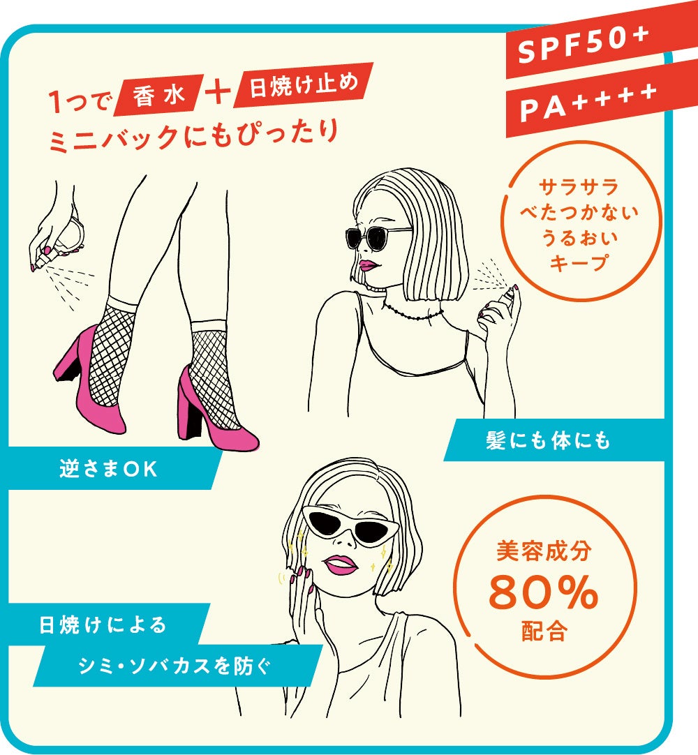・シュットひと吹き、香りに包まれながら紫外線から髪と肌をしっかり守る
