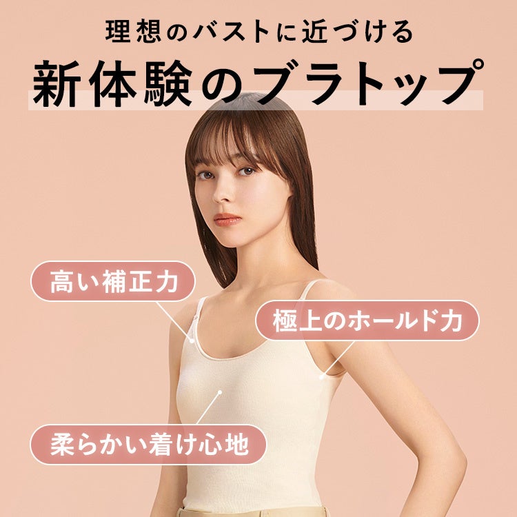 従来のカップ付きキャミソールは補正力が弱いため、ナイトブラの代用として就寝時のバストのサポートには適していませんでした。ナイトブラとキャミソールは製造プロセスが異なるため、一体型の実現は難しいとされているなか、『BAMBI WATER』ではナイトブラの補正力をキャミソールに統合する開発に取り組み、今回発売する「BAMBI WATER スタイルブラキャミソール」でバストのサポートと魅力的なシルエットを実現しました。