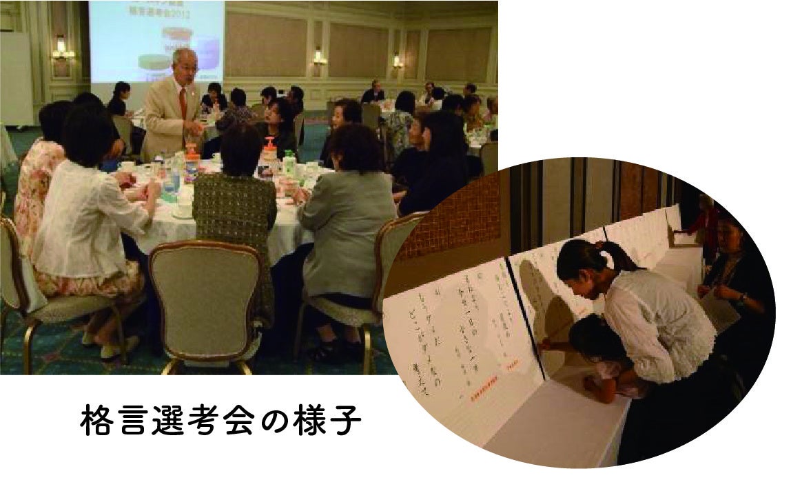一般公募で集まった格言を選考いただくため、1999年からご愛用者との格言選考会がはじまりました。37名でスタートした格言選考会は、これまでに、延べ2万人に迫る方々にご参加いただきました。全国各地のご愛用者様に格言を選考いただく、格言集がつくられています。