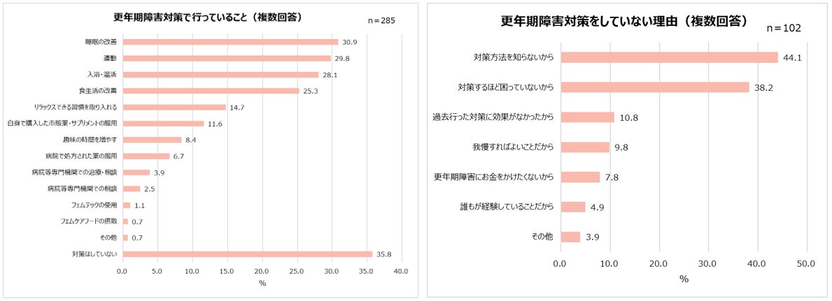 ・更年期障害対策1位「睡眠の改善」2位「運動」。対策していない人は「方法を知らない」