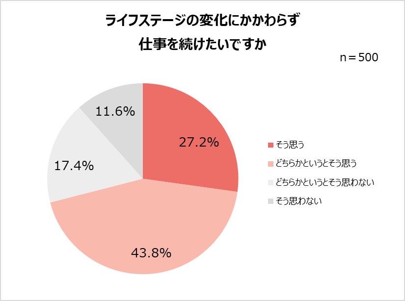結婚や出産など、ライフステージの変化にかかわらず仕事を続けたいと回答した人は全体の約7割。今後も社会における女性の活躍が期待できます。