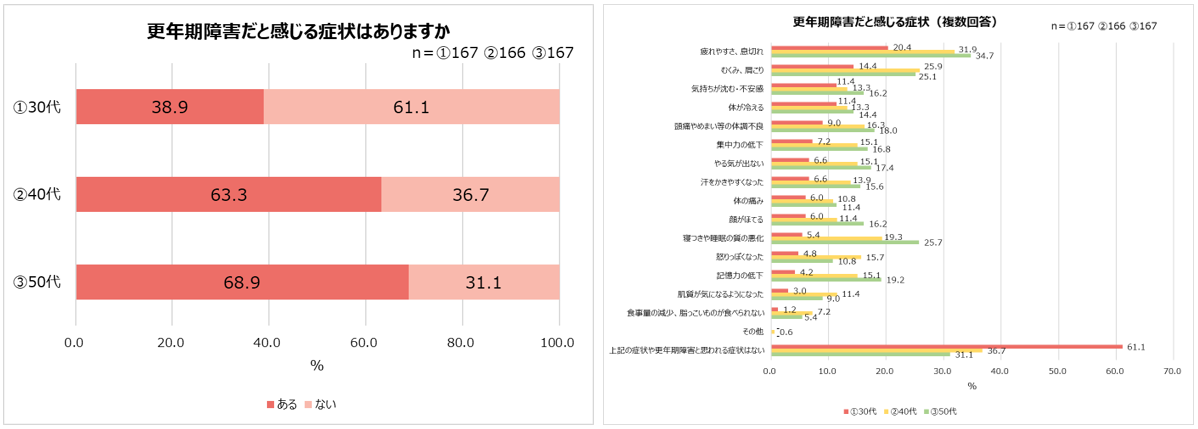 ・30代約4割、40代約6割、50代約7割が更年期障害を自覚