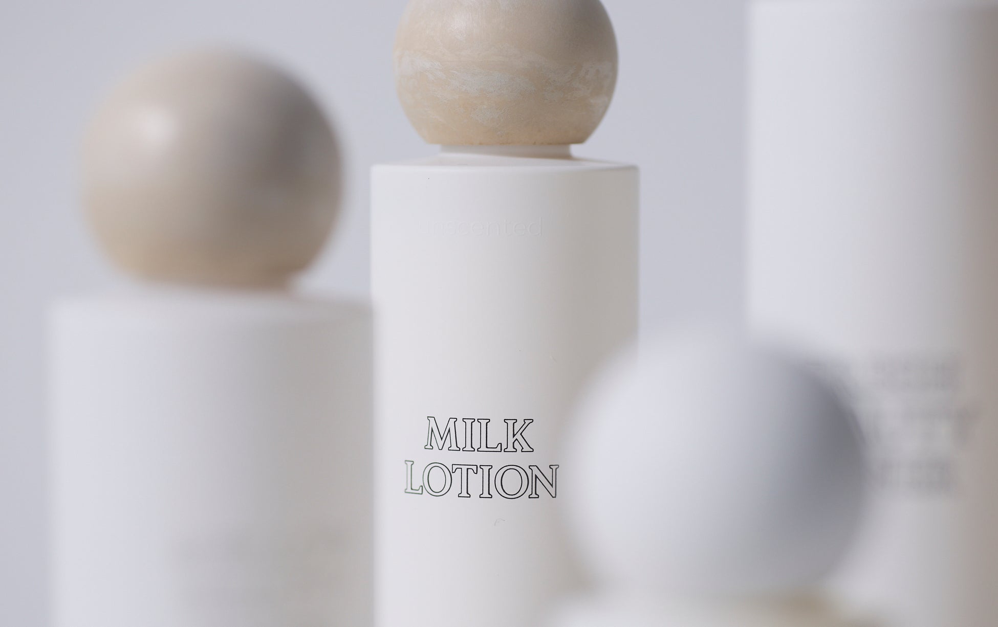 肌への⼼地よさの追求はもちろん、独⾃のブレンドで香りを打ち消す試作や原料の最適化を繰り返し誕⽣した「unscented(限りなく⾹らない無⾹料)」処⽅は、決して⾹りを否定するものではなく、無⾹料の化粧品を使うことで「⼀度リセットすること」「より⾹りに対する感受性を⾼めるきっかけにすること」を提案する。