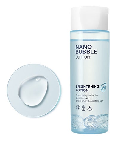 日本初*1 、ナノバブルの働きで美容成分を肌に届ける*2薬用美白*3化粧水。 ”薬用W・ナノバブルホワイトローション”。ナノバブルパワーで、キメ・毛穴・くすみ*4の肌悩みにアプローチ!ナノバブル発生ボールを振ることで、超微細粒子のナノバブルが瞬時に肌の隅々まで浸透*2していきます。美白*3有効成分の「トラネキサム酸」と「グリチルリチン酸」のW薬用成分配合で、うるおいを守りながら、明るい美肌へと導きます。